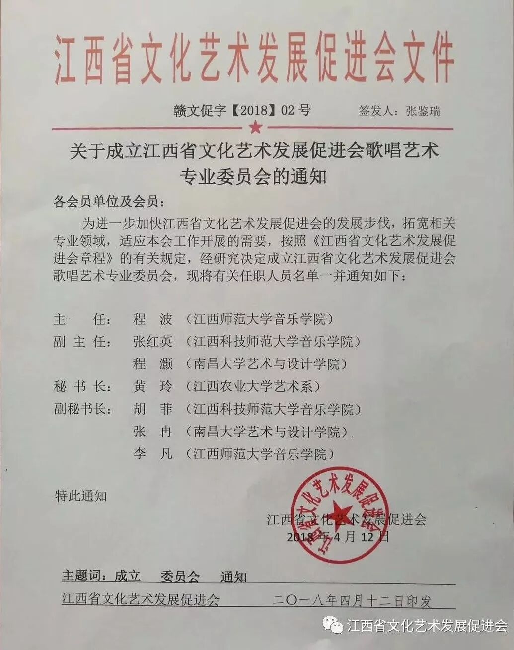 江西省文化艺术发展促进会歌唱艺术专业委员会成立!