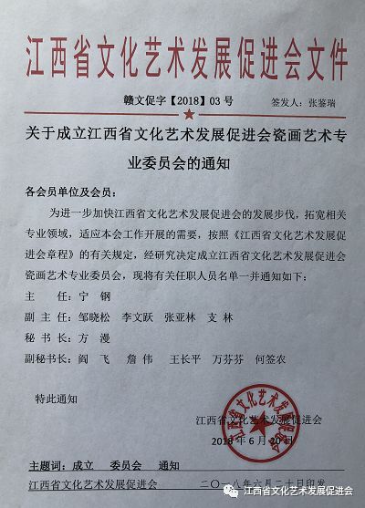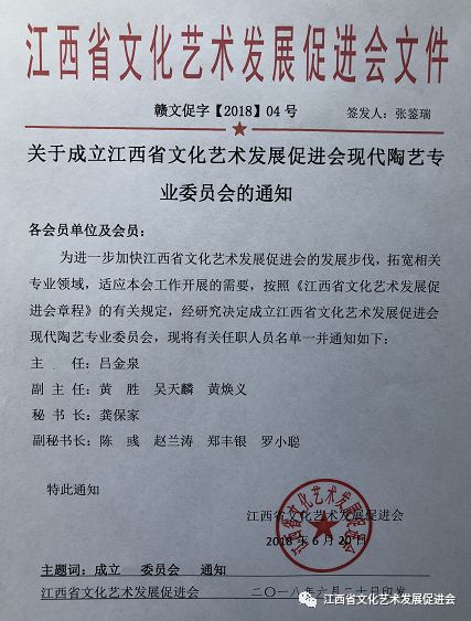 2018年6月25日下午3点整,恰逢江西省文化艺术发展促进会成立2周年之际,我会在景德镇陶瓷大学美术馆成立了瓷画艺术专业委员会和现代陶艺专业委员会。