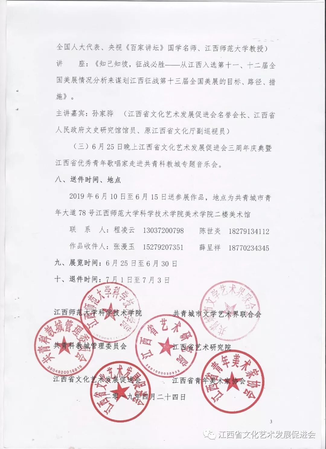 2019年6月10日至6月15日送参展作品,地点为共青城市青年大道78号江西师范大学科学技术学院美术学院二楼美术馆