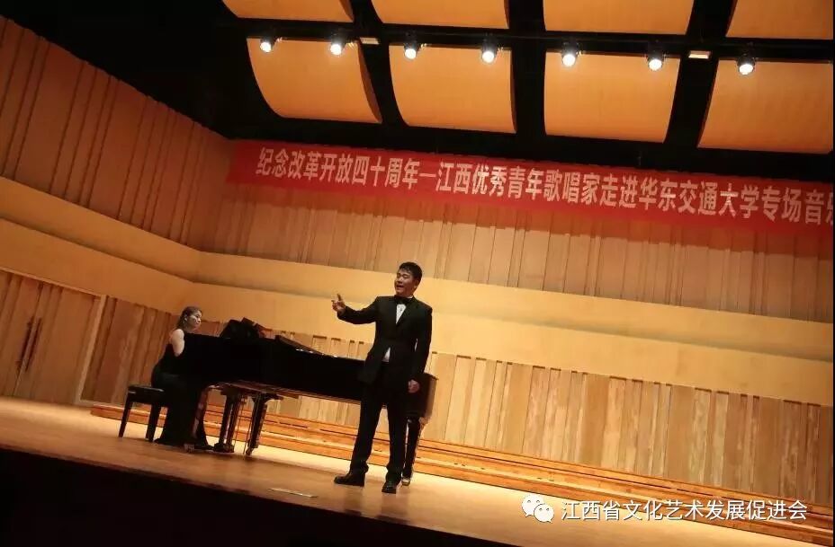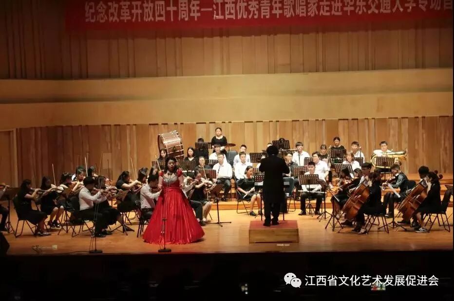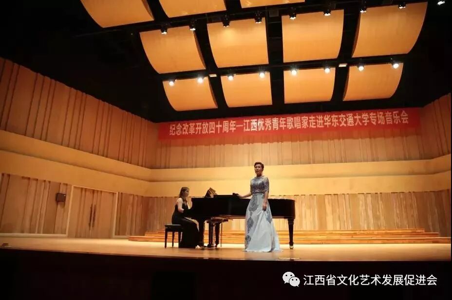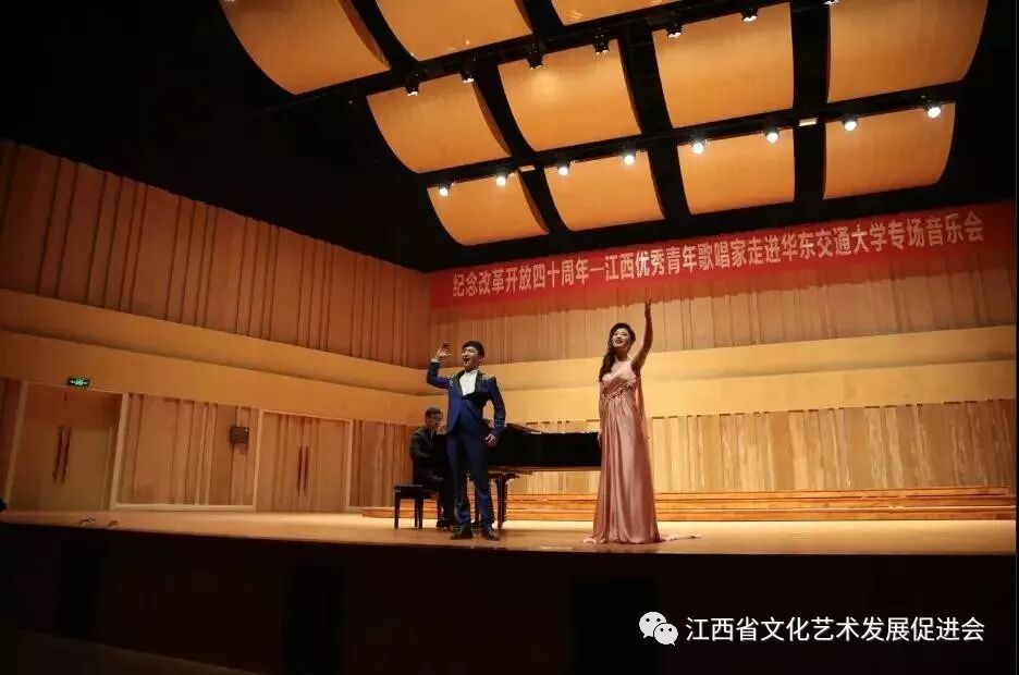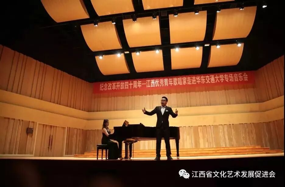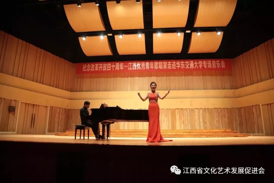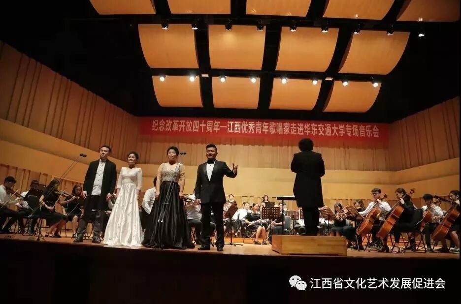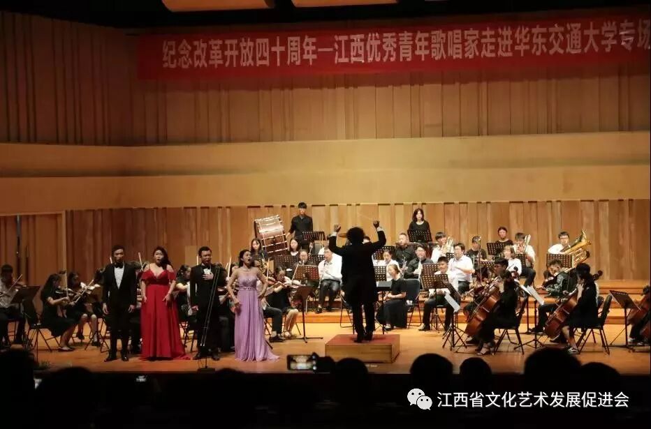 由江西省文化艺术发展促进会歌唱艺术专业委员会主办、华东交通大学艺术学院承办的,纪念改革开放40周年江西优秀青年歌唱家走进高校巡回交流华东交通大学国庆专场音乐会,于二零一八年九月二十八日晚,在华东交通大学艺术学院音乐厅圆满结束。