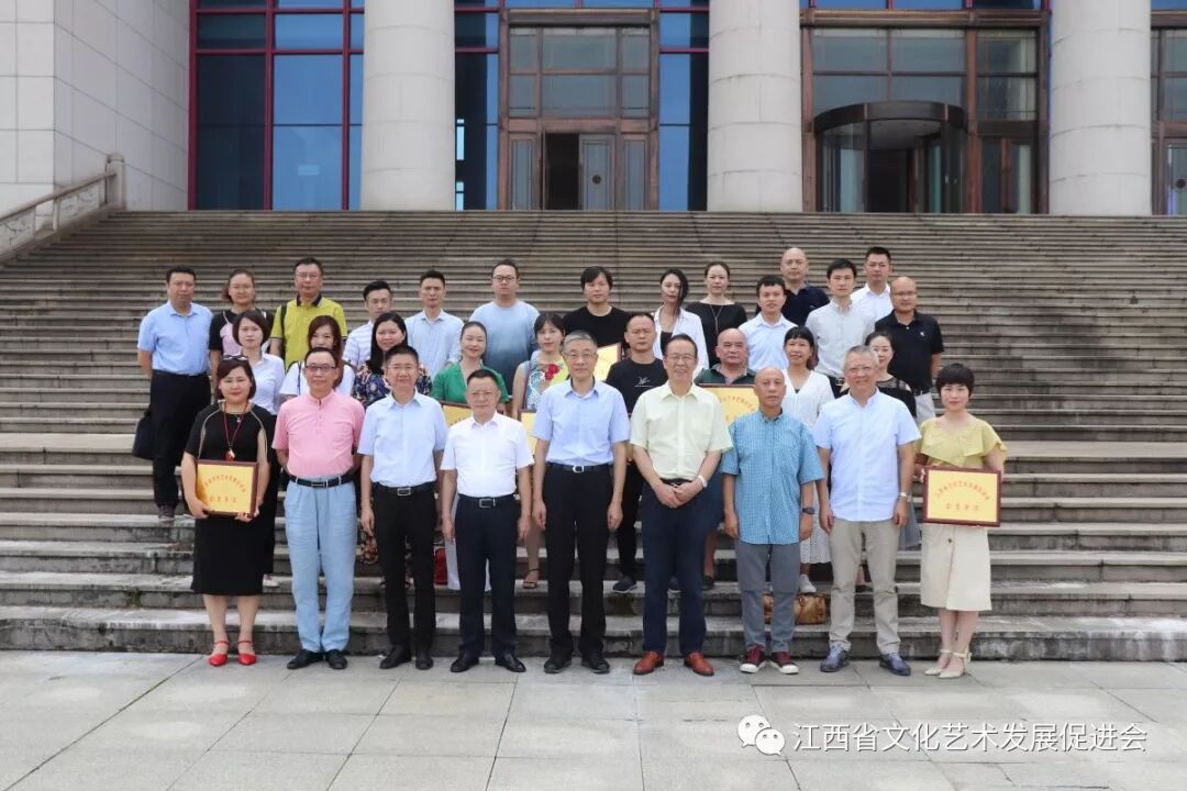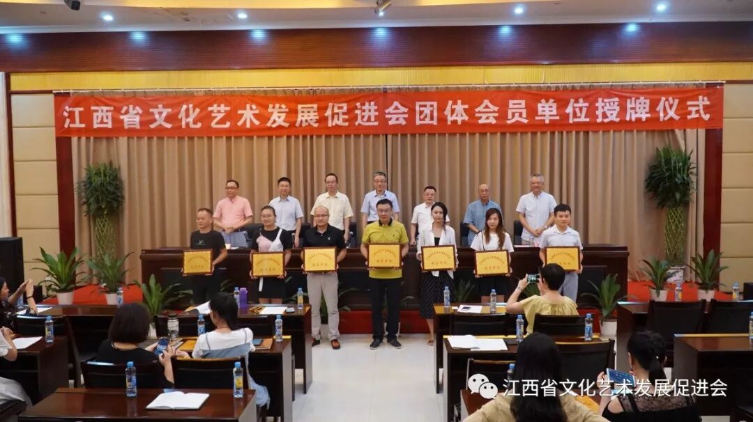 7月19日江西省文化艺术发展促进会新增团体会员单位授牌仪式在江西展演中心举行。省十二届人大常委会委员、省人大教科文卫委副主任委员沈建华,江西文化演艺发展集团党委委员、副总经理徐光华,江西广播电视大学原副校长、江西省开放教育协会常务会长李国敏应邀参加了授牌仪式。江西省文化艺术发展促进会会长张鉴瑞,江西文演发展集团教育科技有限责任公司总经理何啸鸣,江西省文化艺术发展促进会副会长、江西画报社原社长万建明,江西省文化艺术发展促进会秘书长、原江西省文化厅艺术处调研员陈鹤毅出席仪式。